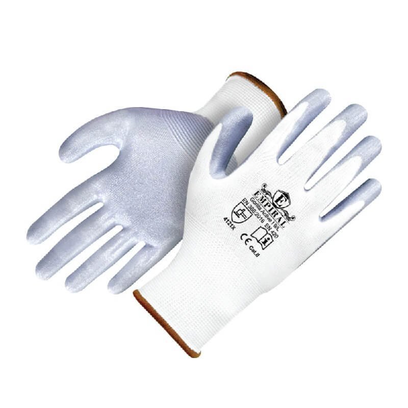 Gorilla Active I – 13 Gauge White Polyester Liners Grey Nitrile Palm Coated Glove (12pairs)