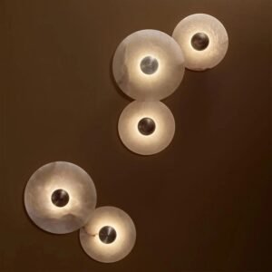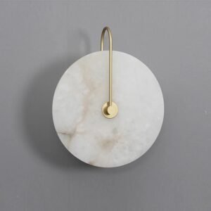 Illuminate your living room, bedroom, or TV background with our natural marble LED wall lamp. Its elegant round shape in gold metal offers versatile styling options for any space.