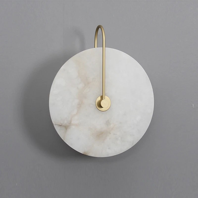 Natural Marble LED Wall Lamp Elegant Round Shape in Gold Metal