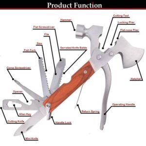 [Main tools] 1. Pliers; 2. Phillips screwdriver; 3. Double-sided poke knife; 4. Wood saw blade; 5. Knife; 6. Bottle opener; 7. Word screwdriver; 8. Cork stopper; 10. wire cutter; 10. axe; 11. hammer and self-defense and other functions
