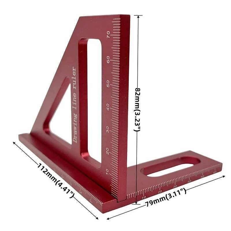 Precision Edge Red Aluminum Alloy Triangle Protractor 45°/90° Woodworking Marvel