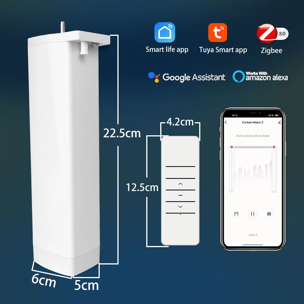 This Tuya Zigbee intelligent electric automatic curtain motor can realize the automatic opening and closing of the curtain and has very good versatility. You can open and close your curtains directly through the mobile app; you can open and close the curtains regularly, you can also control your curtains through Alexa, Google Assistant (Google home page), Yandex Alice and other voice controls.