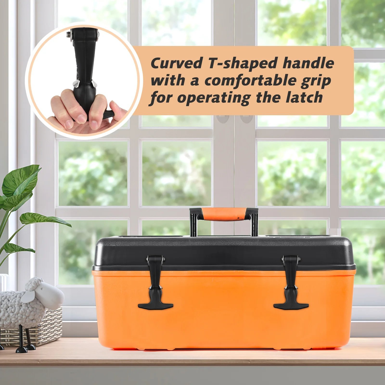 – Curved T-handle style provides comfortable grip for operating latch.