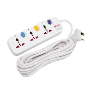 Description: Power all your devices with ease using the Veto 5m Power Extension Cord. This cord features a type G plug, various sockets, and switches, all housed in a durable rectangular design. Ideal for home, office, or workshop environments.